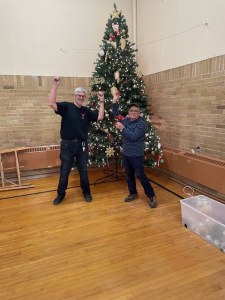 Well the tree ended up on it’s side this past week. Thank you to Jim, Jim and Bruce for getting it standing again.